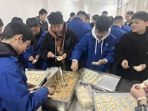 活動當(dāng)晚,食堂里熱鬧非凡。青年員工們圍站一起包餃子,歡聲笑語中,一個個飽含著溫暖與祝福的餃子擺滿了托盤。